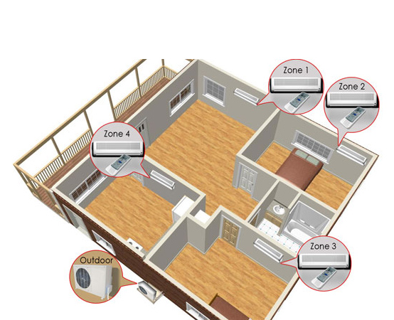 You still have an outdoor unit that compresses and condenses the refrigerant, but it connects to multiple indoor air handlers that are installed directly within the living space. These compact units typically hang from your wall, and they may be individually controlled.